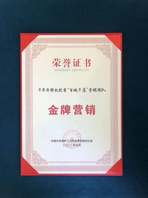 千年舟锌效抗菌「百城千店」营销团队摘得「金牌营销奖」