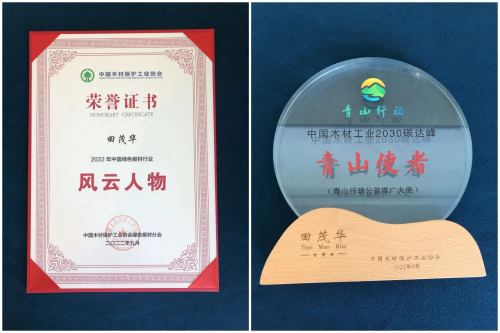 千年舟再斩五奖!千年舟荣膺「2022年全国绿色建材下乡推荐品牌」;千年舟集团摘得「青山行动发起单位」证书;千年舟锌效抗菌「百城千店」营销团队摘得「金牌营销奖」;更值得一提的是,千年舟集团副总裁田茂华凭借对建材家居行业的杰出贡献,荣膺绿色板材行业「风云人物奖」、「青山行动公益推广大使」称号。