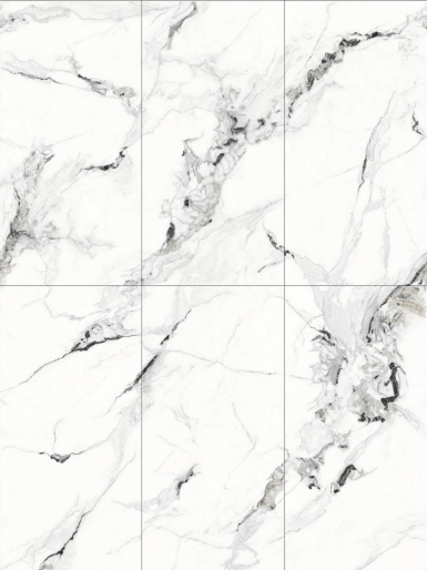 灰底白纹和谐交错,白色线形纹理如一道道倾泻而下的湍急河流,动静相宜,层次分明。无限连纹设计,使纹理更自然完整,更贴近石材原生性。