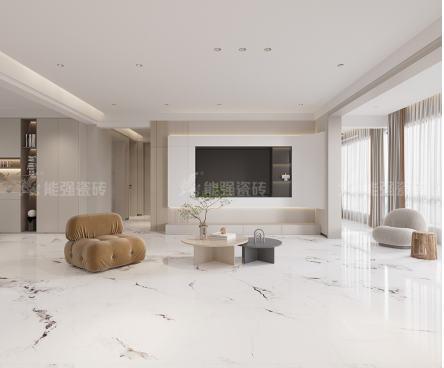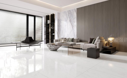 白色砖面素净优雅,独特的灰色条状纹理如白雪覆盖下的高山脉络,自然延伸,流畅灵动,整体纹理细腻立体,静谧温润、大气隽永之感扑面而来。