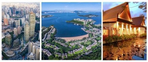 (左起)上海兴业太古汇,香港愉景湾及曼谷素凯泰酒店(The Sukhothai Bangkok)