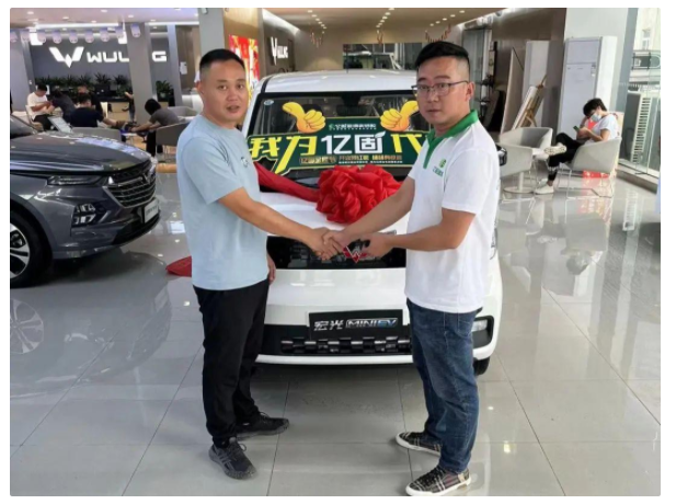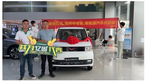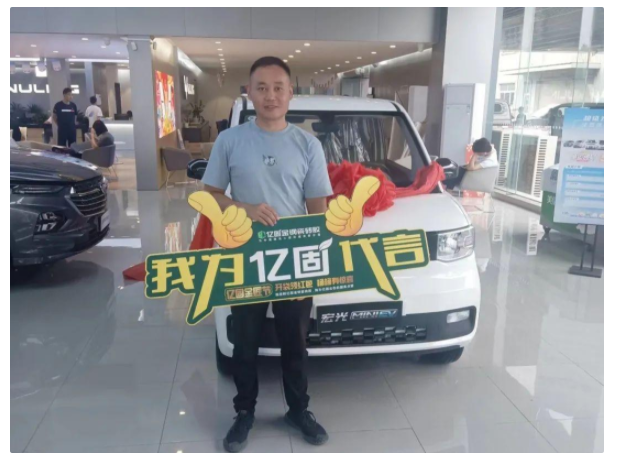 在得知赵师傅集齐卡片的第一瞬间,亿固总部便迅速联系赵师傅核实相关情况,联系当地4S店购买五菱宏光mini新能源汽车,并派山东站销售经理杜衍业前往当地与赵师傅进行车辆交接。