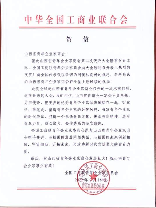 9月17日,群英逐梦 聚势谋远 和合共赢 再续新章——山西省青年企业家商会换届大会暨第二届第一次会员大会在太原举行。