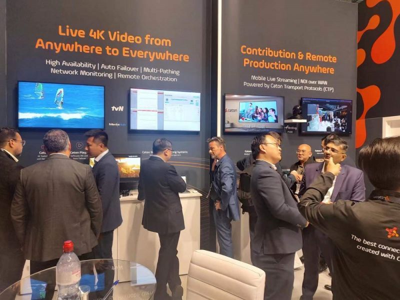 本次展会现场,科腾科技展示了基于核心CTP协议构建的全球视频传输平台CVP(Caton Video Platform)。全球的媒体,广播电视用户,可以使用自己的IP网络和既有编解码设备,接入CVP平台,稳定、安全、高质量的传输到世界任何地方。除此之外,我们还展出了多款硬件和软件产品及其新发布的功能,支持多链路聚合的媒体网关CRS 3.2,支持4K60P HDR 的Caton Prime 4K编解码器,可在Apple TV上使用的Caton Player、移动视频直播的Caton Publisher、和将NDI接入广域网的Caton NDI Gateway。通过现场的展示,我们吸引了现场众多的客户来体验和媒体的采访。