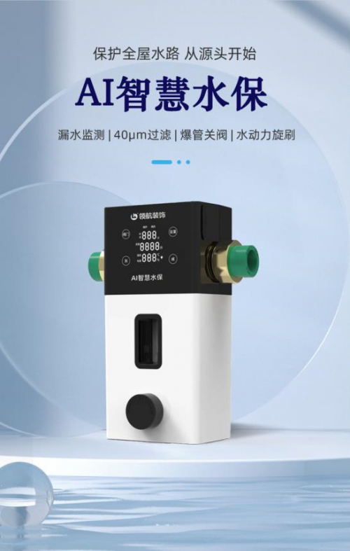 保护全屋水路,从源头开始。2022年9月23日,由领航装饰集团联合开发的AI智慧水保在领航装饰“第九届透明家装节”上正式上线。这也是全球第一款AI智慧水保专利产品,并荣获国家发明专利证书。