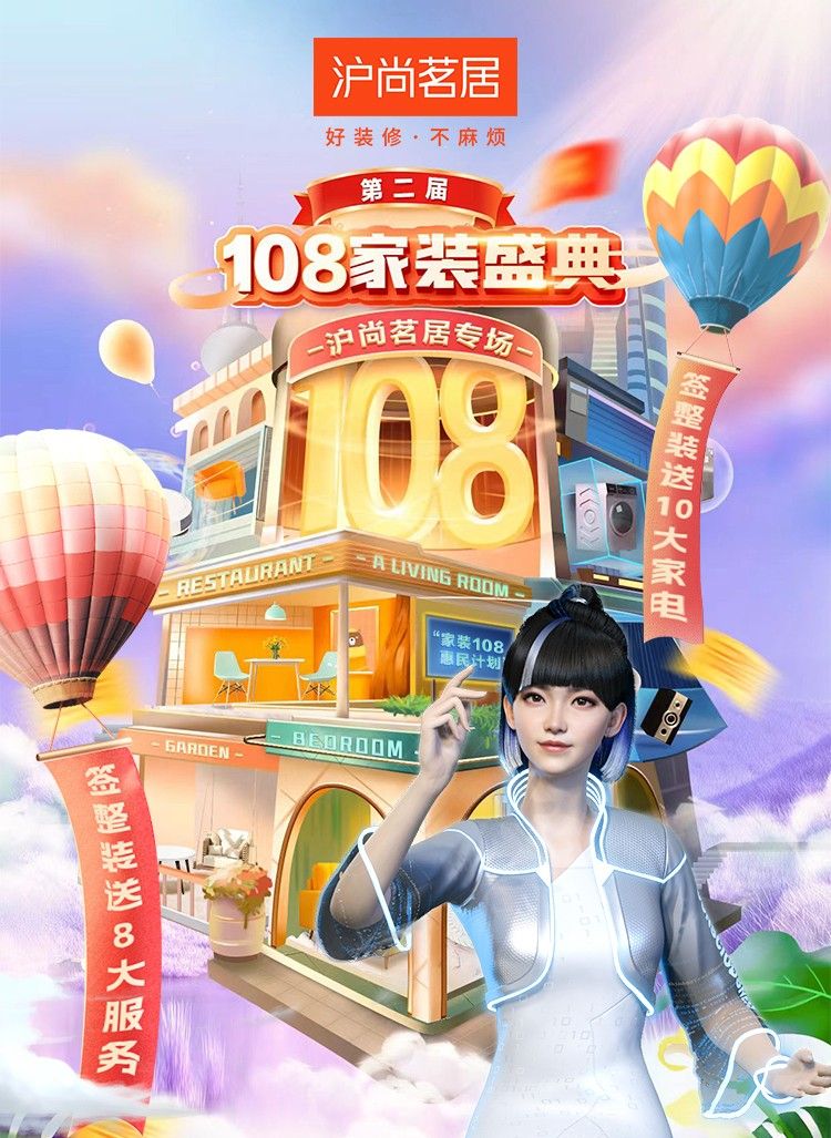 本次108家装盛典,沪尚茗居邀请了百度虚拟人——希加加担任首席家装推荐官,为您带来全新的家装体验!