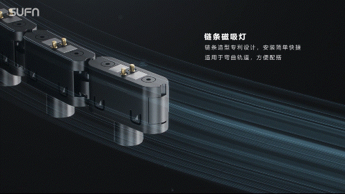 作为无主灯照明,SUFN三峰照明星耀系列链条磁吸灯本身外观造型及其照明方式已经具有装饰性,外观造型采用专利设计,同时还具备拆装便捷,移动灵活等优点。适用于弧形轨道,简约唯美,可沿着轨道灵活地根据各种需求来搭配打造空间氛围感,实现空间全方位的光源分布;随着家具摆设的变化,可任意调整所需位置补足光源,满足在不同空间的灯光需求,包括入住后灯光不足的随时补充,轻松融入各种装修风格。位置随意调节,以不同的方式在空间活跃,光影随心而动,灵动优雅。