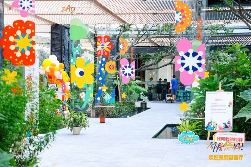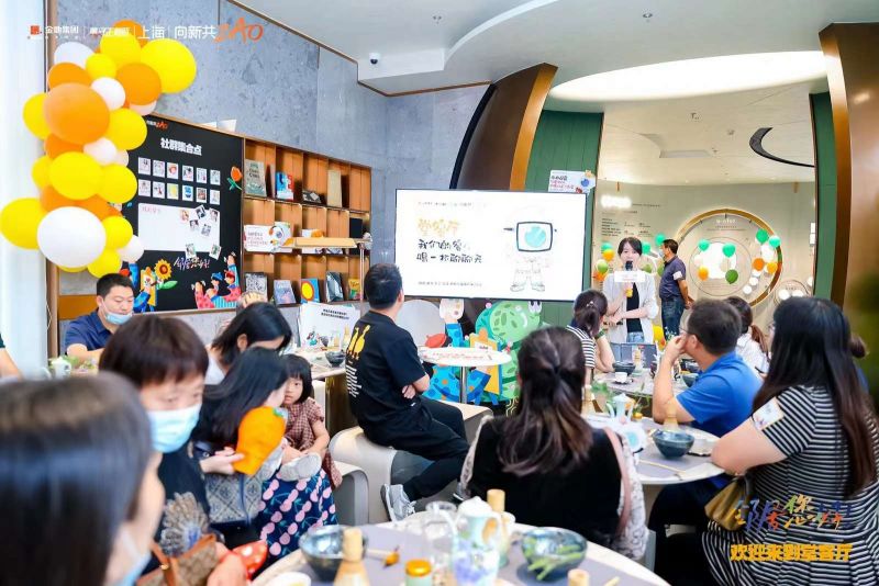 在金地「堂客厅」中,将功能与机制互为表里,共享长桌、社群集合点、漂流书屋、社区艺展、中央屏幕、便民工具柜六大空间功能设置,共建邻里客厅新享法,以美好激发美好。