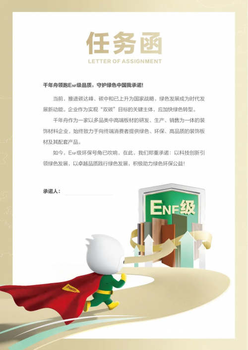 作为深度参与国标制定的企业,作为领跑ENF级品质的企业,作为守护绿色健康家的企业。9月26日,千年舟首届「绿色点亮中国」活动火热开启,让我们一起用绿色守护中国人的健康家!