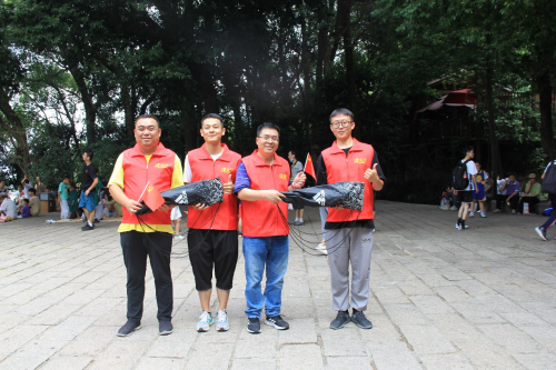 “冲啊”早上八点半,大家统一来到山脚下,随着南方公司轨道大项目经理吴景宝的一声令下,大家各个精神抖擞、意气风发沿着古道快速朝着山顶奋力前行。