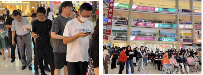 不一会签到处即排满了人,出示二维码由工作人员核销进行签到礼领取,在品牌店铺、签到现场、抽奖现场见到众多消费者朋友的身影。