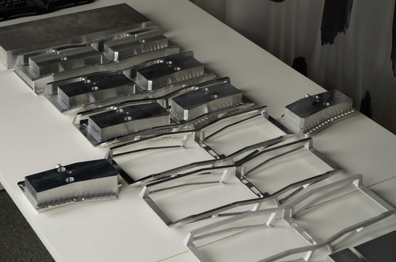 整个镂空金属框架需通过 3+2 轴 CNC 高精机床 7 小时精铣加工,并配合长达 2 小时的人工打磨、喷砂,再经过阳极氧化、喷涂或烤漆才得以成型,最大限度的贴了 VF-19 这架战机的前掠翼造型和浮空感