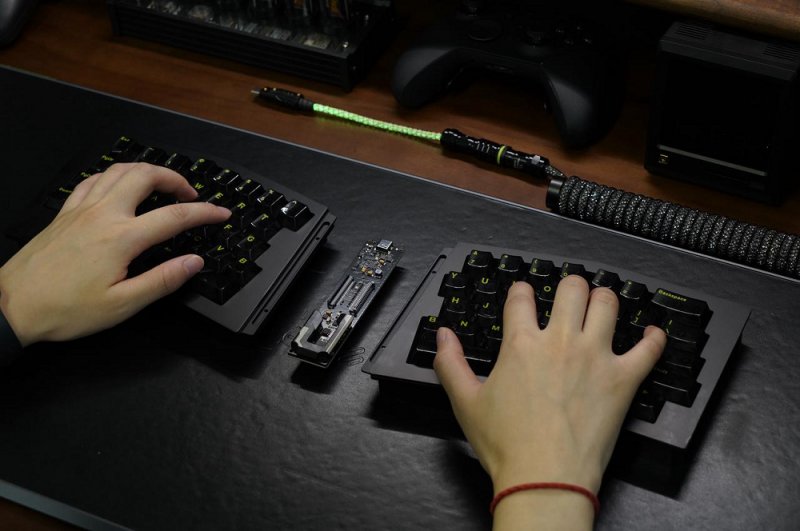 而这种分离式设计,使得 PCB、定位板、可调节 Leaf-Spring 结构、轴下垫、消音棉等跟打字和声音体验相关的所有组件分别封装在左右两个独立的按键盒当中,这种紧凑和结构和狭小的空间,最大化的消除了空腔音的存在,从而让用户可以获得更加纯粹的打字音