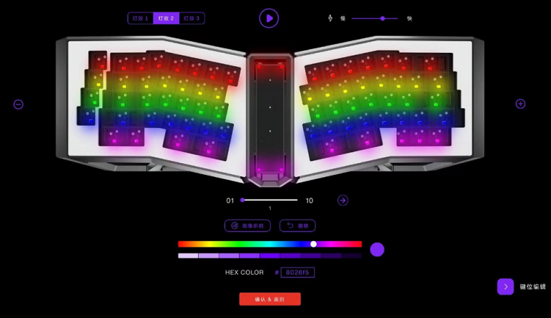 为了贴合超时空要塞的灵感,AM AFA 键盘内置了灵感来自“超时空航法”与“IN SPACE”的炫酷轴底灯效,均来自 Macross Plus 的名场面。同时支持自定义轴底灯,用户可自由定制自己喜欢的 RGB 效果。