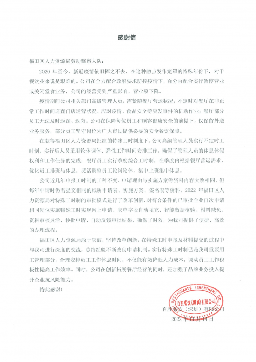从今年2月份开始,福田区的疫情一直持续不断,呈现点多、线长、面广的特点。随着疫情封控以及白名单的实施,特殊工时审批也面临疫情防控的挑战。为了保证特殊工时审批工作的连续性,福田区人力资源局结合特殊工时管理改革,及时推出了“秒批”改革创新举措,采取不见面的方式进行审批,不仅解决了企业的燃眉需求,也降低了疫情扩散的风险,持续不间断给企业提供优质的审批服务。自今年试点开始,已经帮助8家企业完成了特殊工时“秒批”审批工作,涉及员工18059人。在对“秒批”的实施效果进行走访反馈的过程中,企业满意度达到100%。某大型企业还特意发函对福田区人力资源局敢于打破陈规、高效审批特殊工时助力企业稳岗就业抗击疫情表示感谢。