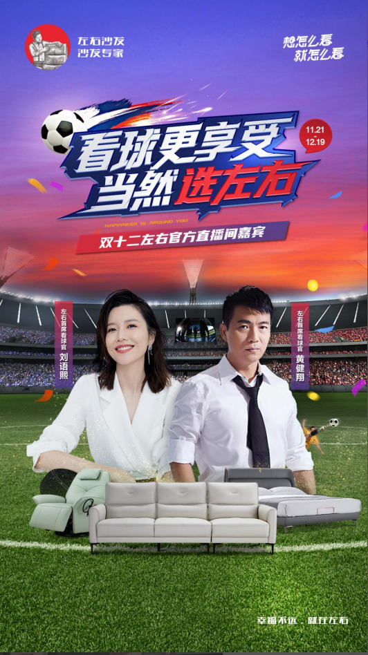 看球更享受,当然选左右!除了会在直播间狂撒福利以外,11月21日-12月19日,左右沙发全国线上线下4000多家门店共同大放“价”,推出多款超值爆款、套餐,以超强力度给你带来最实惠的一站式家居购物新体验!