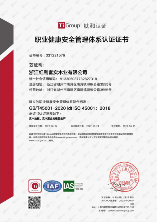 ISO45001职业健康安全管理体系认证证书是由中国质量认证中心(CQC)颁发的一种权威性的第三方认证。红利获得职业健康安全管理体系的认证更新,源自其在企业组织架构、管理职责和权限、企业方针政策、管理制度、生产环境等多方面做到了合规与良性化发展。