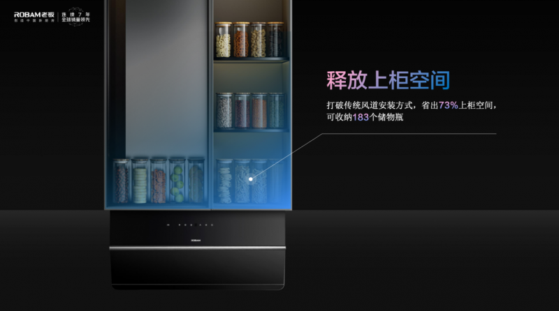 5009S通过巧妙的结构优化以及反复的试验论证,在确保净烟效果的同时,机身厚度也低至令人惊叹的18cm。不仅如此,老板电器还对5009S的风道同样进行了超薄设计,并使之左移,让产品机身、烟道均保持了纤薄尺寸,做到了“真超薄”,并且还增加了73%的上柜空间,缓解了很多家庭厨房收纳空间不足的难题。在外观方面,5009S以“黑松露”为灵感,整体呈黑色调,拢烟板与前置面板之间形成黄金分割线般优雅的棱角,更为产品增添一抹锐意进取之意,美观小巧的外形不仅成为了厨房美学中的点睛之笔,却又不会喧宾夺主,恰到好处。