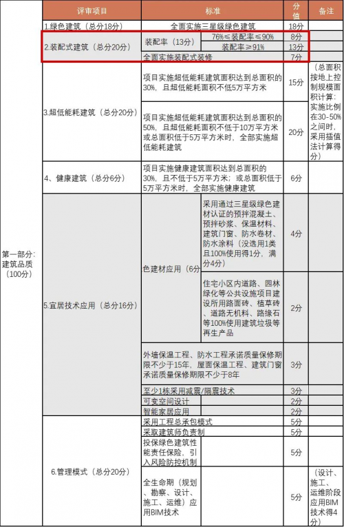 北京市高标准商品住宅建设方案评审内容和评分标准(部分)