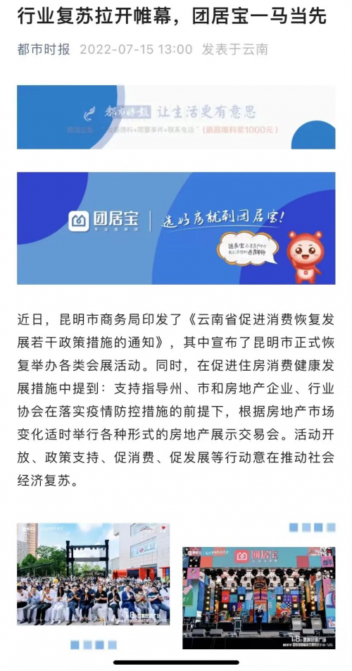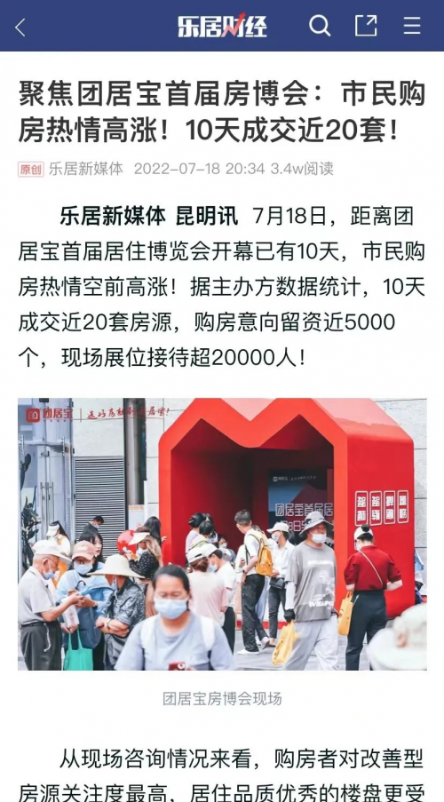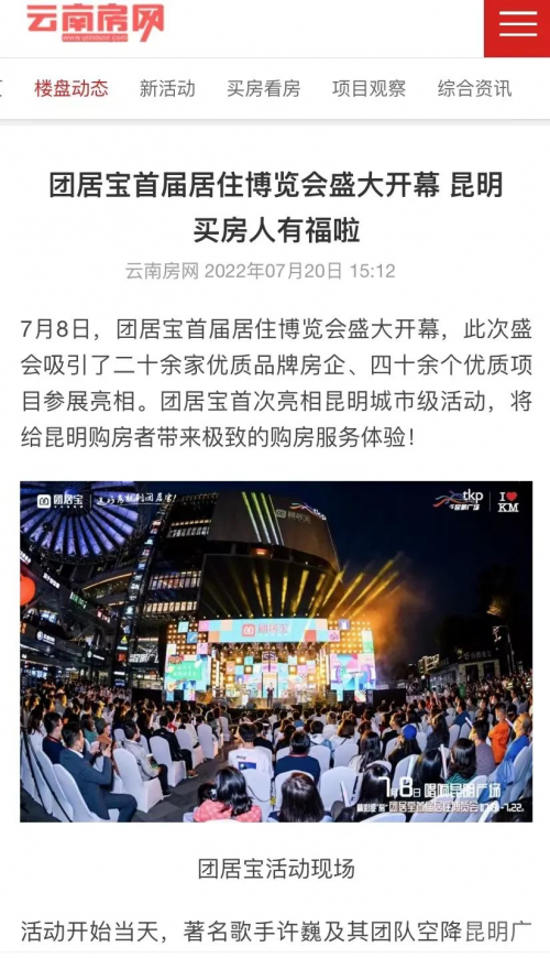 春城晚报、都市时报、云南信息报、乐居财经、凤凰房产、云南房网、昆明楼市、昆明楼市一线等权威主流/行业媒体持续跟进深度报道。对于团居宝这一云南居住行业的新锐品牌和此次居住博览会,各方均给予了高度关注和赞许。