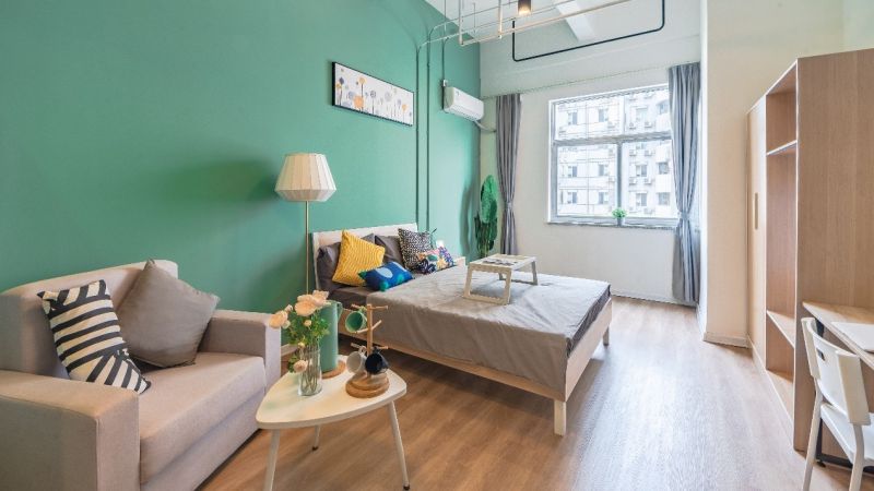 中新乐璟天海生活社区的总改建面积超过3万平方米,其中有4栋宿舍楼,总房间量638间,房型包含4-6人间企业宿舍和单人/家庭房型,根据不同房型配备有不同的家具家电可供拎包入住,满足各类企业员工的租住需求。