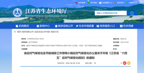 2022年4月6日,江苏省生态环境厅印发的应对气候变化及节能减排工作领导小组应对气候变化办公室关于印发《江苏省“十四五”应对气候变化规划》的通知提到,推动空气能等新能源在城乡建筑中的综合利用。