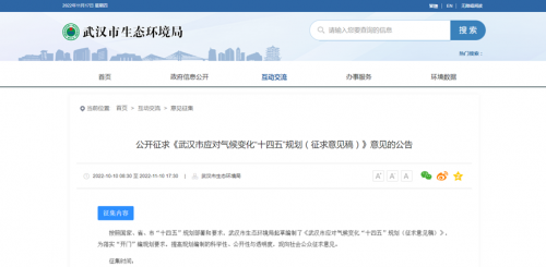 2022年10月10日,武汉市生态环境局印发的公开征求《武汉市应对气候变化“十四五”规划(征求意见稿)》意见的公告提到,提升空气源热泵等可再生能源建筑在城市建筑中的应用面积。