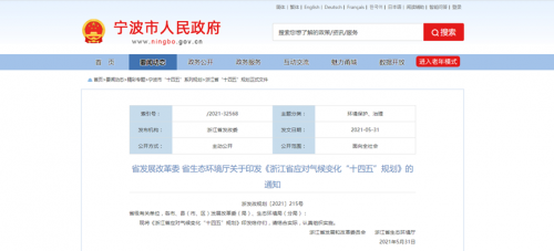 2021年5月31日,宁波市人民政府印发的省发展改革委省生态环境厅关于印发《浙江省应对气候变化“十四五”规划》的通知提到,开展地源热泵应用等节能改造。