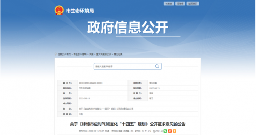 2022年8月15日,安徽省蚌埠市印发的关于《蚌埠市应对气候变化“十四五”规划》公开征求意见的公告提到,大力推广空气源低温热泵供暖等低品位余热回收利用技术。