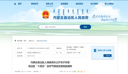 2021年10月18日,内蒙古自治区人民政府印发的内蒙古自治区人民政府发布内蒙古自治区人民政府办公厅关于印发自治区“十四五”应对气候变化规划的通知提到,推广空气源热泵供暖等技术。