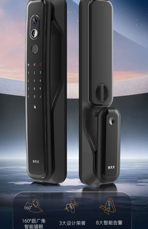 颜值外观方面好太太V86S和华为智能门锁标准版各有特色,V86S更为圆润一些,华为的更硬朗,需要注意的是好太太V86S还斩获了3大设计大奖,包括中国制造之美、当代好设计、2022亚洲设计奖,同级别中也是较为罕见的存在。最后,好太太V86S还配备了160°超广角智能猫眼,可视角度更广。以上就是两款2000元价位的智能门锁,你学会怎么选择了吗?