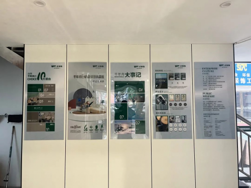 企业文化墙记录了千年舟的发展历程和企业优势。