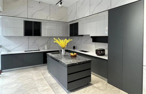 黑白搭配的橱柜设计简约而又不失人间烟火气,大多为简单的直线,横平竖直,减少了不必要的装饰线条,用简单的直线强调空间的开阔感,色调偏冷,又给人清爽之感。