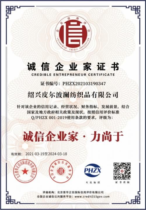 绍兴皮尔波澜纺织品有限公司董事长—力尚于