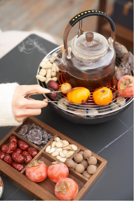 3、怀旧:炉火旁煮茶、烤花生、烤地瓜、吃瓜子、橘子妥妥的80、90后甚至00后的童年回忆呀!