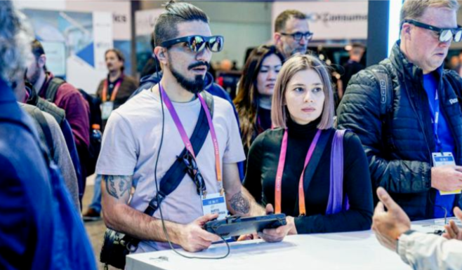除了电视新品,为了进一步提升消费者的观看体验,TCL在周边产品上也持续发力,此次展会,TCL重磅发布了TCL RayNeo X2 AR眼镜和TCL NXTWEAR V VR概念一体机两款新品。前者是全球首款在Micro LED光波导技术上实现双目全彩显示的智能AR眼镜,也是本届获奖产品,后者则是TCL的VR概念新品,致力于为消费者打造更为沉浸式的体验,让人折服。