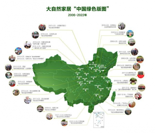 此次“我为大自然种棵树”活动,属于大自然家居2006年推出的“中国绿色版图工程”,是继“我为黄河种棵树”、“我为呼吸种棵树”、“我为孩子种棵树”、“我为蓝天种棵树”等系列后又一个绿色公益植树行动。至今植树超过80万棵的大自然家居,始终坚持“担环保责任、普健康生活、做健康家居”的使命,除了与世界自然基金会(WWF)合作开展“地球一小时”活动,还积践行国家“3060双碳战略”,成为中国家居行业实现碳中和的“灯塔”企业。