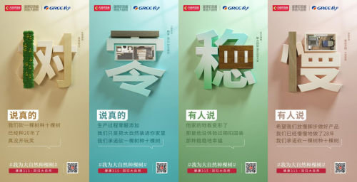 活动海报设计巧妙融合了大自然地板构筑的生活场景与各种木纹,还有消费人群最喜爱的年度爆款推荐,三层实木、多层实木等主打产品推荐。同时,给用户普及了绿色环保产品的特征,如生产过程零醛添加,这不仅能保护人体健康,还能减少土壤水体污染等环境问题。从物质层面到精神层面,让人们感受到大自然地板在环保这件事上确实“没开玩笑”。28年专注绿色健康产品,16年坚持公益种树,“砍一棵树种十棵树”的品牌承诺多年来已经化为大地上的绿意。