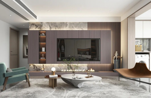 「江南好景不胜数,白月流光双鹤舞。」室无石不雅,居无石不安。别样石纹如江潮拍岸,水沫浮沉;如流云卷舒,缱绻袅娜;如他山璞玉,莹润流光。寓动于静,以流动的动感为居所增添生命张力,将至柔的艺术之美与至刚的现代科技合而为一。