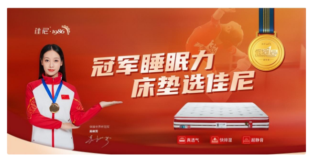 佳尼家具是近年积极拥抱爆品思维的企业。深耕床垫、软床、沙发等软体家居原创设计、生产36年的佳尼家具,一直积极挖掘用户需求,创新产品和服务。疫情期间,佳尼家具更专注于健康优质睡眠的研究,为用户带来更绿色健康的生活体验。2023年,基于当下的消费需求以及佳尼坚守的健康睡眠的价值主张,以及佳尼品牌倡导的“睡眠力就是增强抵抗力”的理念,佳尼携手体操世界杯冠军吴柳芳推出2023开门红爆品—冠军系列新品。