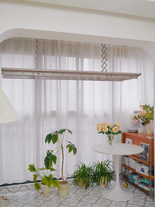 可以通过遥控器、智能语音音箱连接等方式进行升降操控,晾晒衣服数量也比较多,航空材质环保耐用。