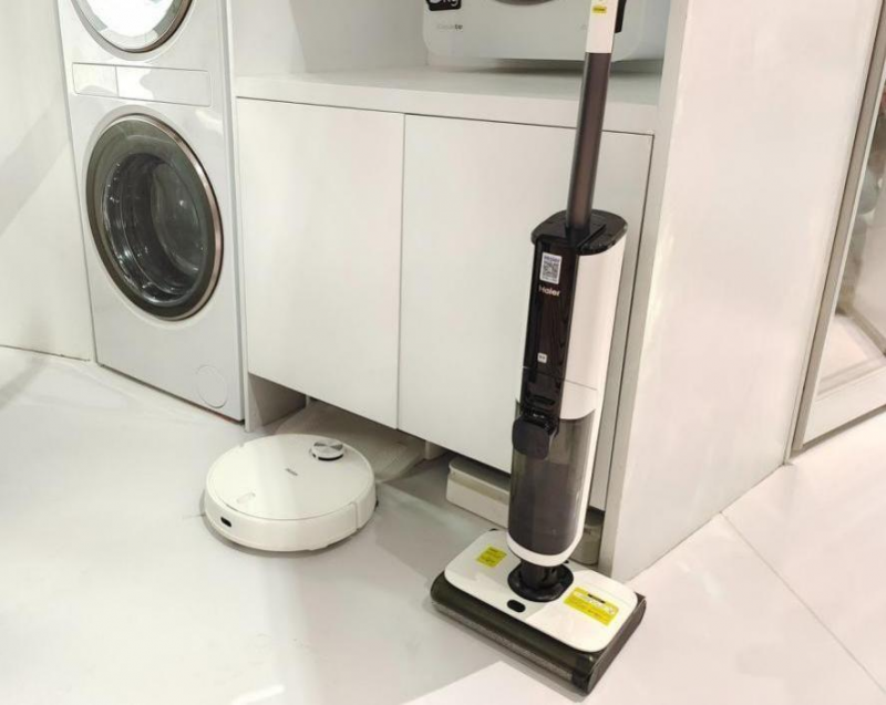 据现场工作人员分享,该扫拖机器人接入了海尔三翼鸟家庭智慧大脑,与全屋智慧家电实现联动。用户只需向墙上的“大脑屏”发出指令,便能远程指导扫拖机器人工作。据悉,海尔全能仿生扫拖机器人还能与洗衣机实现“扫洗联动”,洗衣机启动清洗时,扫地机将同步清扫周边地面,并在洗衣机工作结束后清理多余水渍。并在洗衣机工作结束后清理多余水渍,实现智慧联动。同时自动上下水模块可实现自动加水、自动排污,为家居清洁“解放双手”。