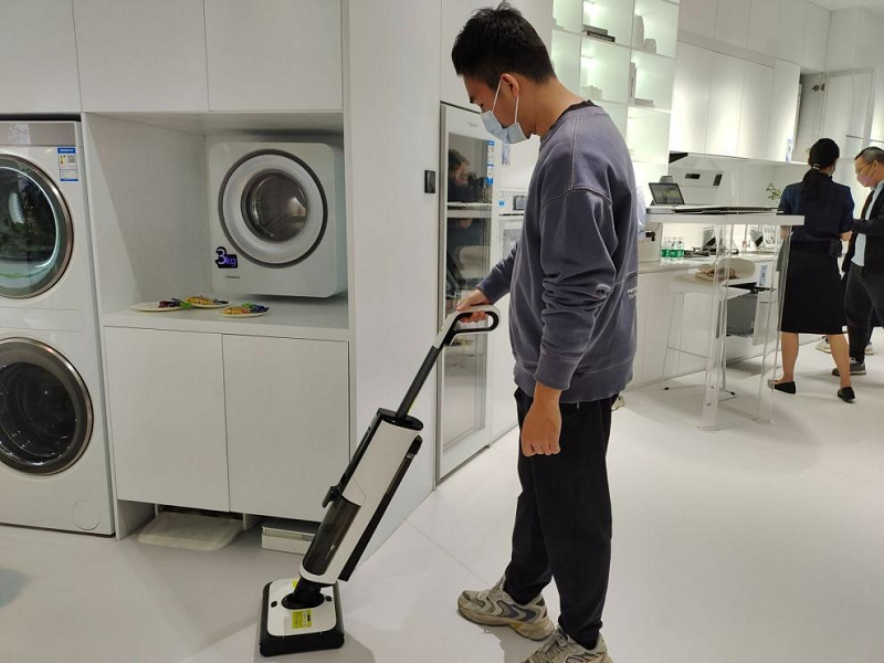 除此之外,针对厨房等重油污场景的地面清洁,海尔双动力洗地机也做了不同程度的智慧升级,凭行业独创的双动力技术,让参观的用户体验“双向悬浮助力”带来的轻便,“双倍洁净力”清洁地面油渍、污渍的高效,为用户提供应对全屋地面清洁难题的场景解决方案。