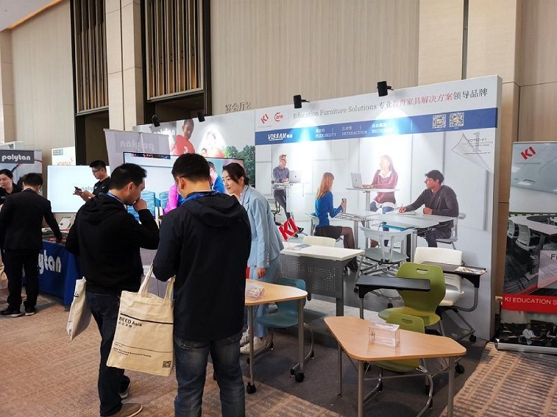 在展区,KI携最新教育产品与多场景解决方案亮相现场,前瞻性的空间理念和创新的产品全面展示,共同为新型教育空间生态建设开辟出广阔的空间。学习2号座椅系列、英莱特系列、英特莱威系列等多款课桌椅吸引众多专业观众目光,以品质演绎现代教育家具艺术之美,将实用与时尚融合,成为会场焦点。