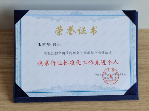 此外,在阳帆参与诸多的标准制定背后,副总经理王凯峰发挥了重要作用,他结合行业现状和阳帆企业发展情况,实时性地提出不少建设性建议,本次也是获评“热泵行业标准化工作先进个人”荣誉称号。两项殊荣既是对阳帆在标准制定积极参与的肯定,也是对阳帆未来持续为规范行业发展做出更多贡献的鞭策。阳帆也将不断提高企业的质量效益和核心竞争力,以标准化助力空气源热泵发展,为助推“双碳”战略实施做出积极努力。