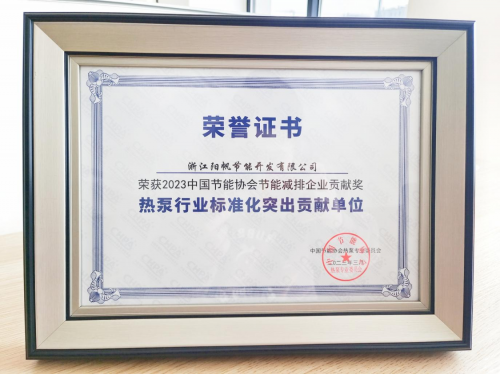 以标准树标杆,阳帆空气能获热泵标准两项荣誉