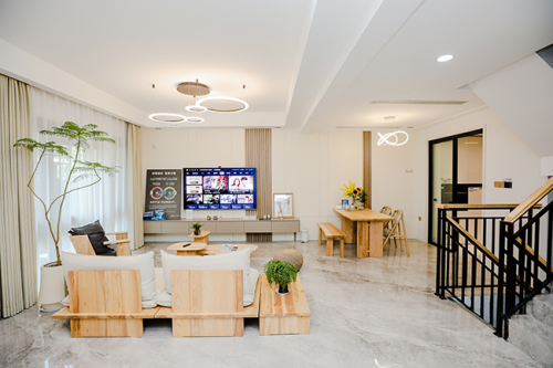 在AI-LiNK智能物联“诚信同盟舒适家”里,除了可以感受到人与空间的美好关系,也可以看到一整套冷暖风水系统的和家居建材的完美融合,整体风格高端质感,舒适自在。