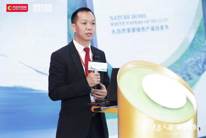 当前消费者关于健康环保的需求日益凸显,在绿色人居的主流趋势下,大自然家居品牌与产品研究管理部研究院院长杨亮庆先生,现场隆重发布DMF生态静音科技新品。为了保证实木地板的天然环保,同时解实木地板的响声问题,大自然家居研究院历时三年,经过千百次测试论证,创新研发DMF生态静音科技,以水凝保护层代替胶膜,做到健康无胶成膜,突破行业技术壁垒。