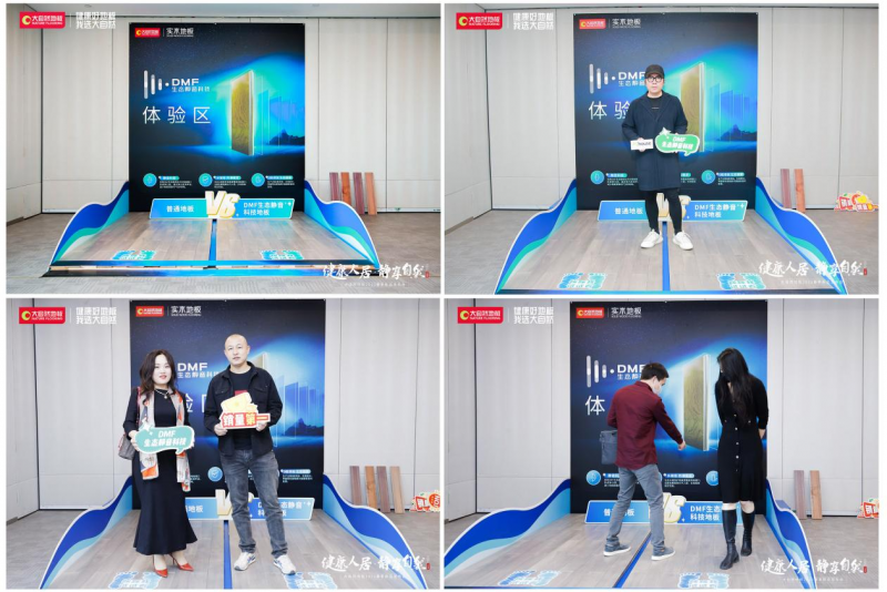 活动现场,大自然地板诚邀权威媒体、嘉宾前往DMF静音空间体验DMF生态静音科技地板与普通地板的差别。现场通过两个不同区域的测试,明显可见采用DMF生态静音科技的地板稳定无响声;而普通地板踩上去则发出嘎吱的响声,两者产生了鲜明对比。现场实际体验之后,大自然DMF生态静音科技新品得到在场权威媒体、嘉宾的高度认可。