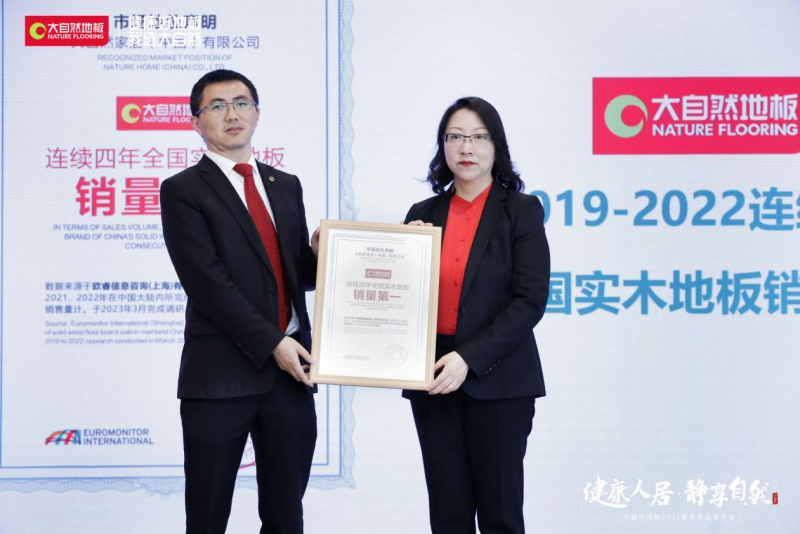 日前,大自然地板荣获世界市场调查机构欧睿国际认证的连续四年全国实木地板销量第一。在发布会现场,欧睿咨询亚太区高级总裁穆愔女士对大自然地板连续四年全国实木地板销量第一的市场地位声明做出了解读。该认证是基于欧睿机构对中国大陆实木地板市场进行深度访谈与调研,同时进行反复的验证和校对最终得出的调研结果。随后,在全体嘉宾媒体的见证下,穆愔女士为大自然地板进行了实木地板全国销量第一的证书颁发仪式。